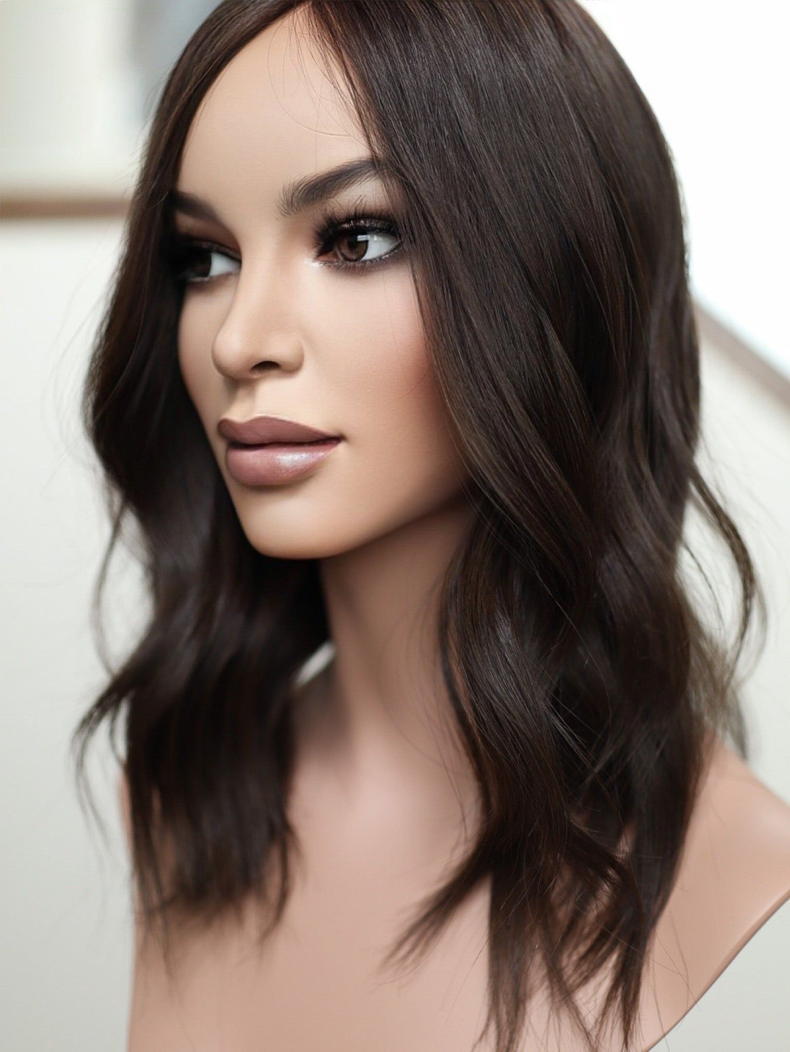 Hair Length: 18". We measure our toppers from the center of the crown down the side to the longest hair. Most of our toppers are layered (with the exception of the bobs/lobs) to help with movement and keep them feeling lightweight. This means the front and sides will be shorter than the back as they get longer towards the back (total measurement). Please plan accordingly.