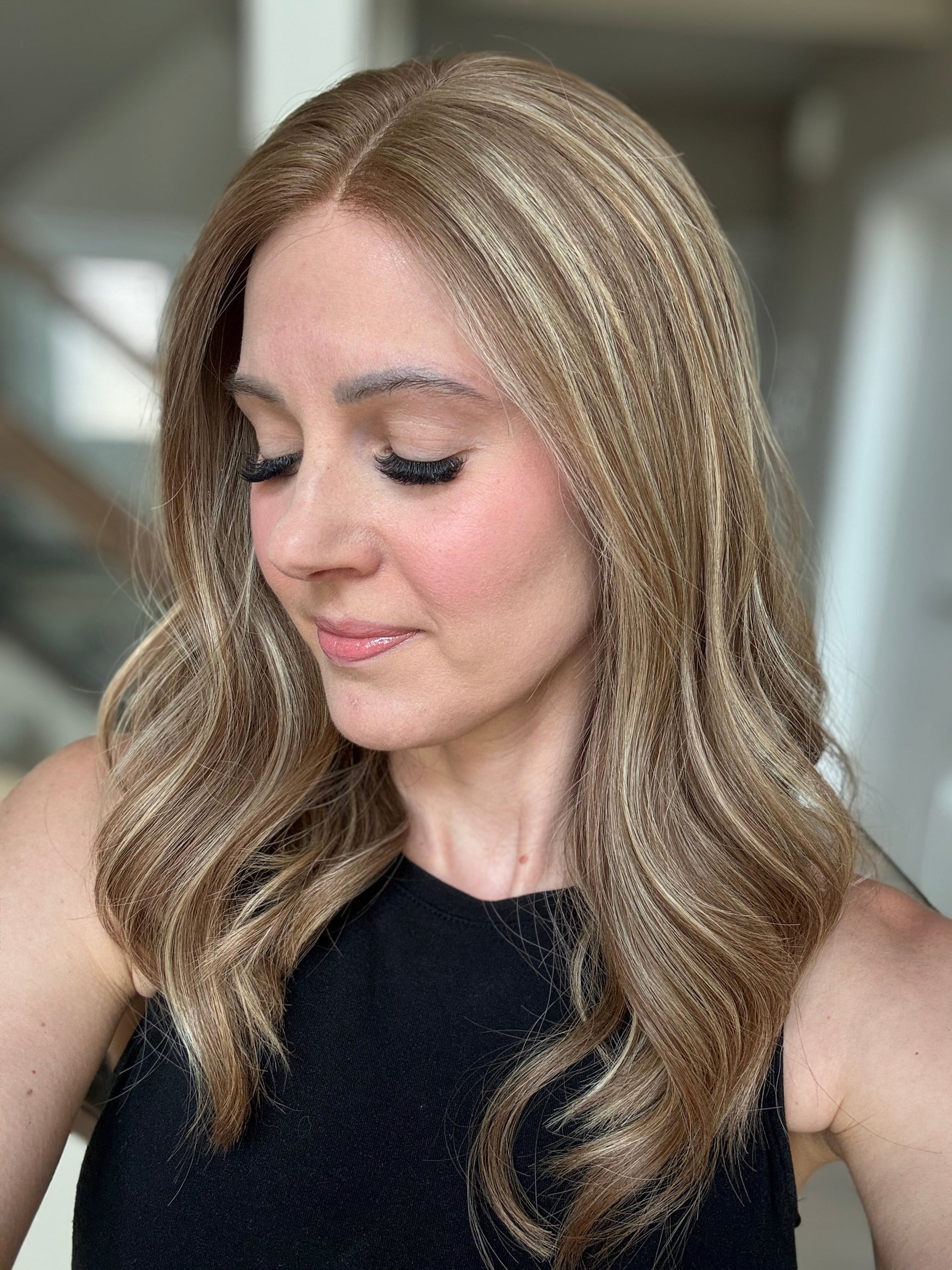 * Please note wig is shown with a small amount of face powder dabbed into the part-line for demonstration purposes. We recommend clients use powder rather than bleaching the knots as it extends the longevity of the wig and often looks more realistic.