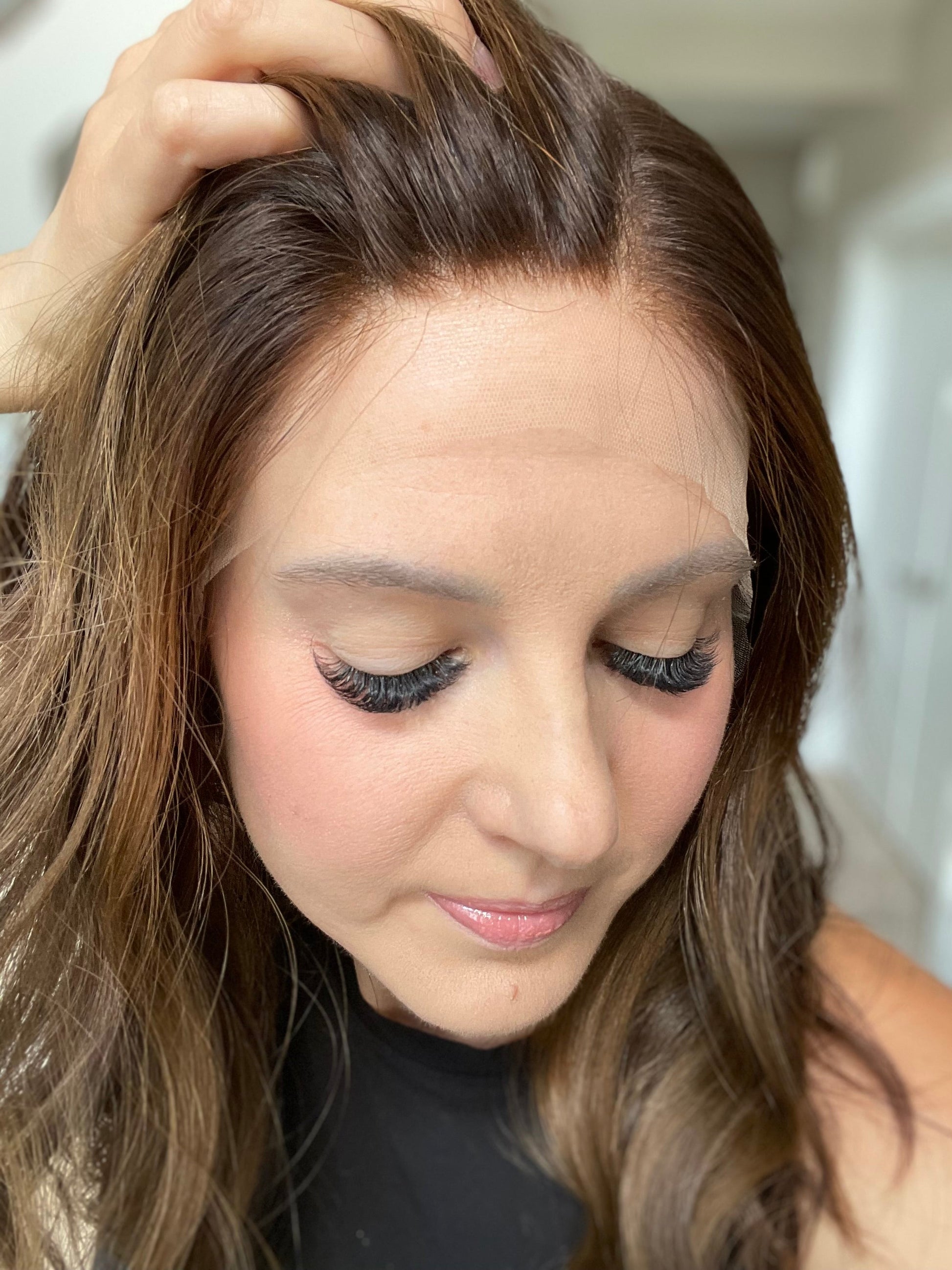 * Please note wig is shown with a small amount of face powder dabbed into the part-line for demonstration purposes. We recommend clients use powder rather than bleaching the knots as it extends the longevity of the wig and often looks more realistic.