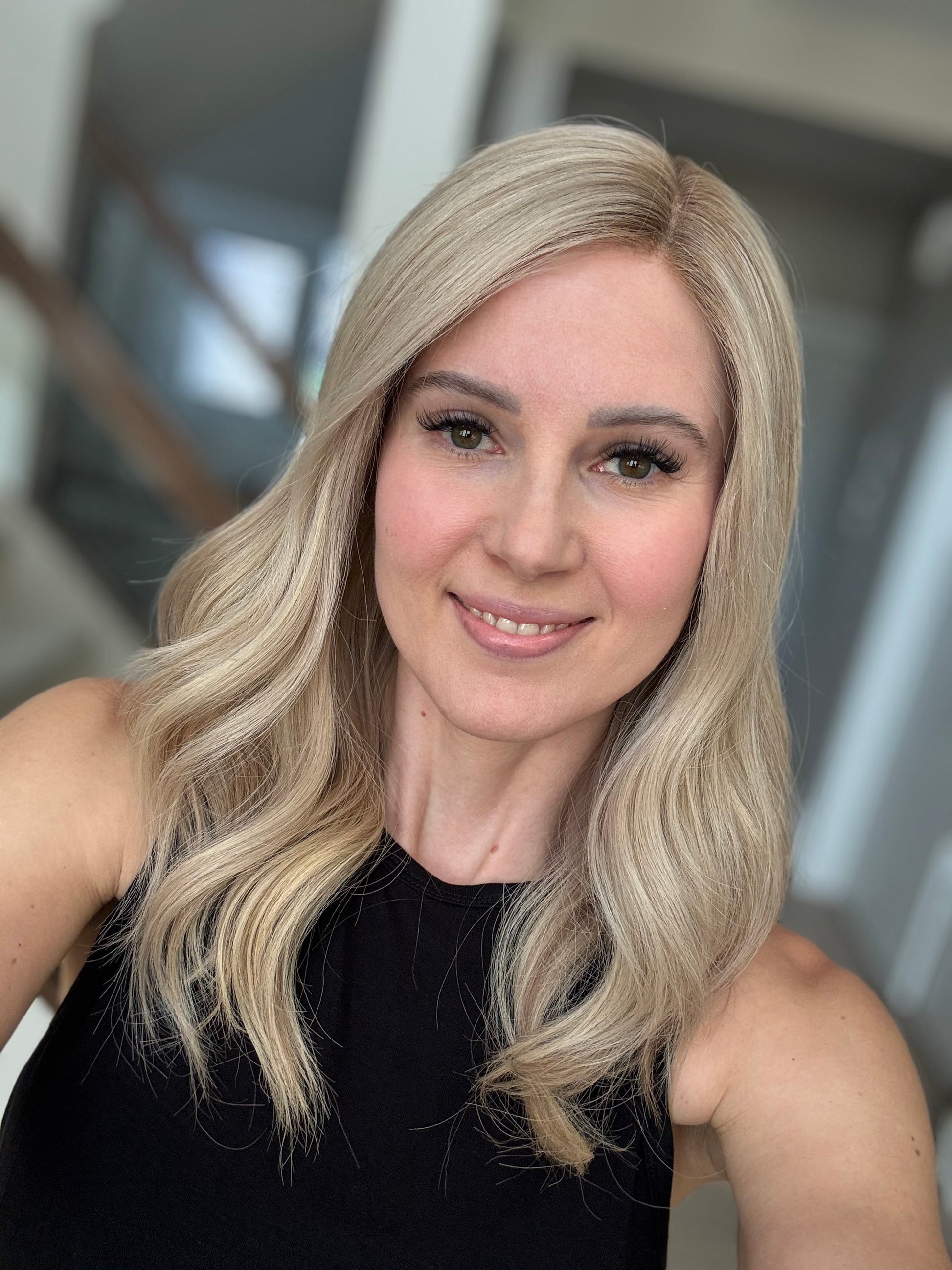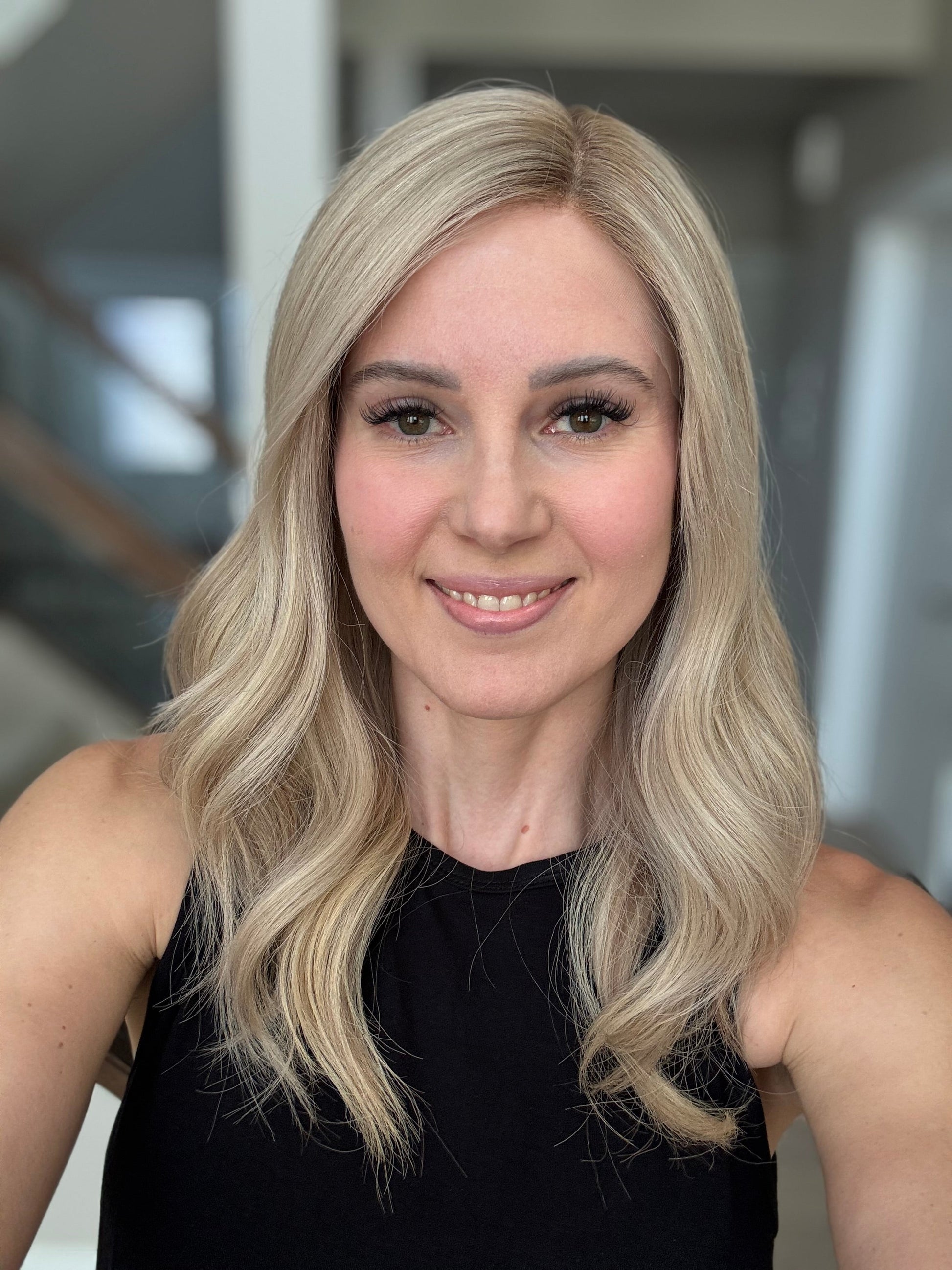 * Color: Light-medium neutral blonde with subtle dimension and rooting.