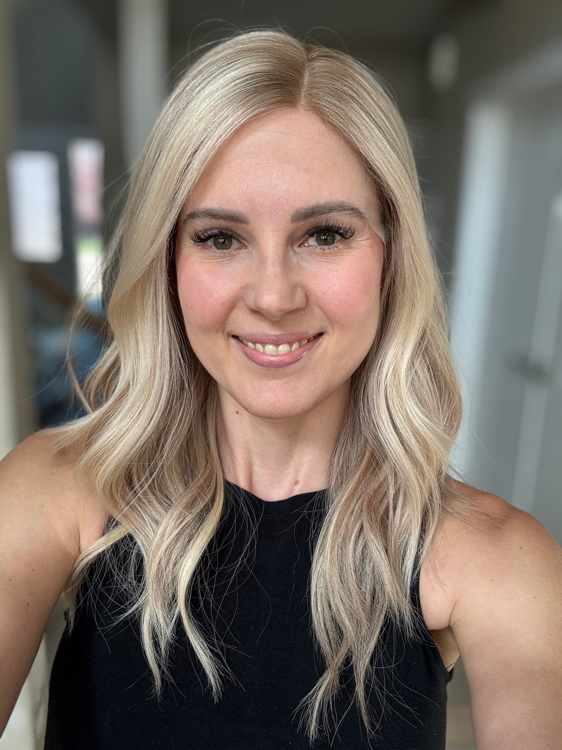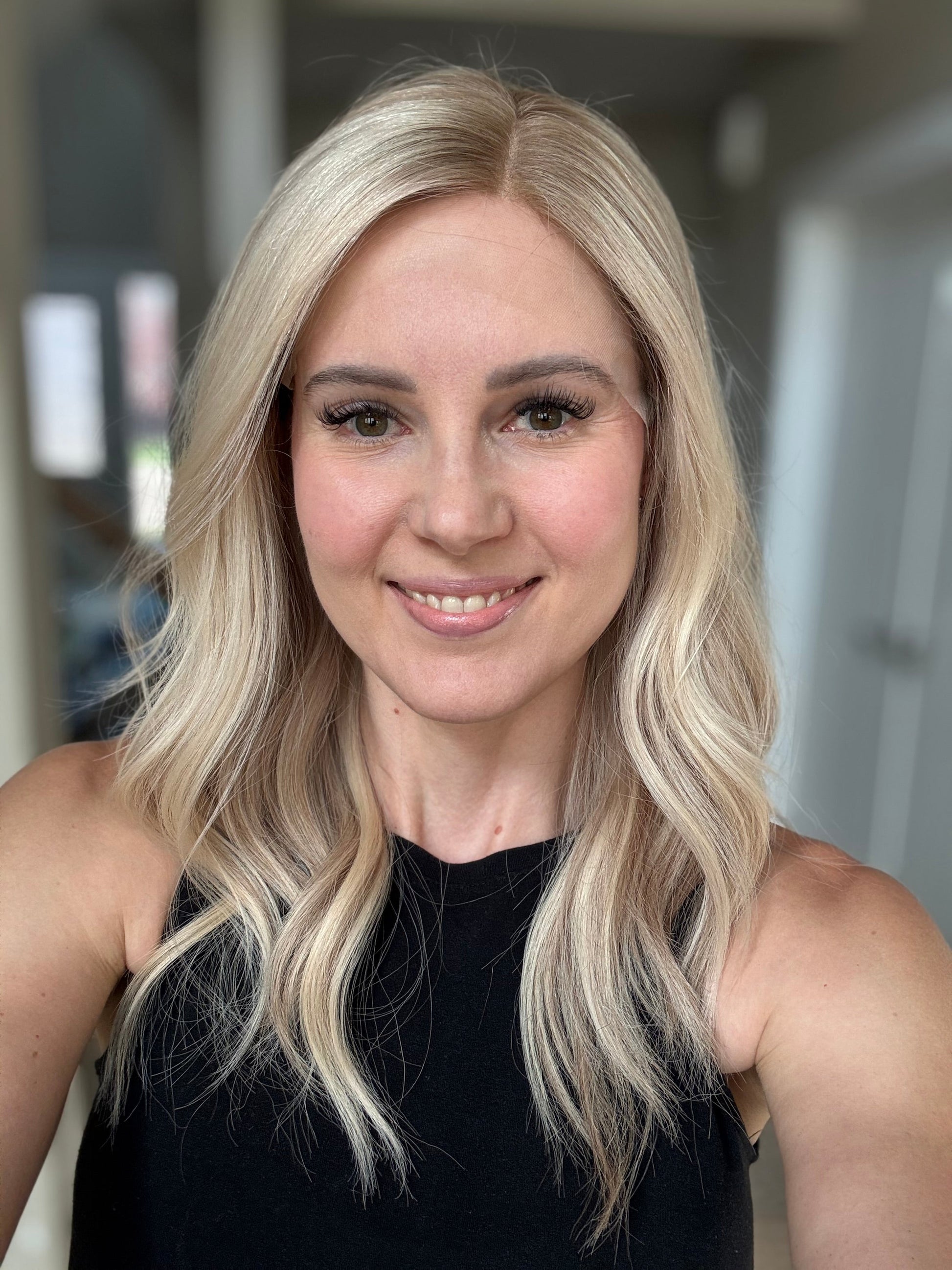 * Color: Neutral light blonde with medium blonde dimension and a medium blonde root.