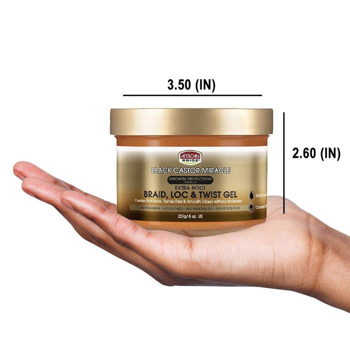 - PROVEN HAIR CARE - African Pride Black Castor Miracle Extra Hold Braid, Loc, & Twist Gel smooths frizz & flyaways while boosting shine for longer lasting styles. This professional product leaves braids, locs & twists neat & controlled.