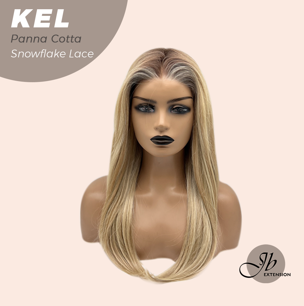 JBEXTENSION 22 Inches Panna Cotta Pre-Cut Snowflake Lace Frontlace Glueless Wig KEL PANNA COTTA【PERMATEASE】【BENDY EAR TABS】
