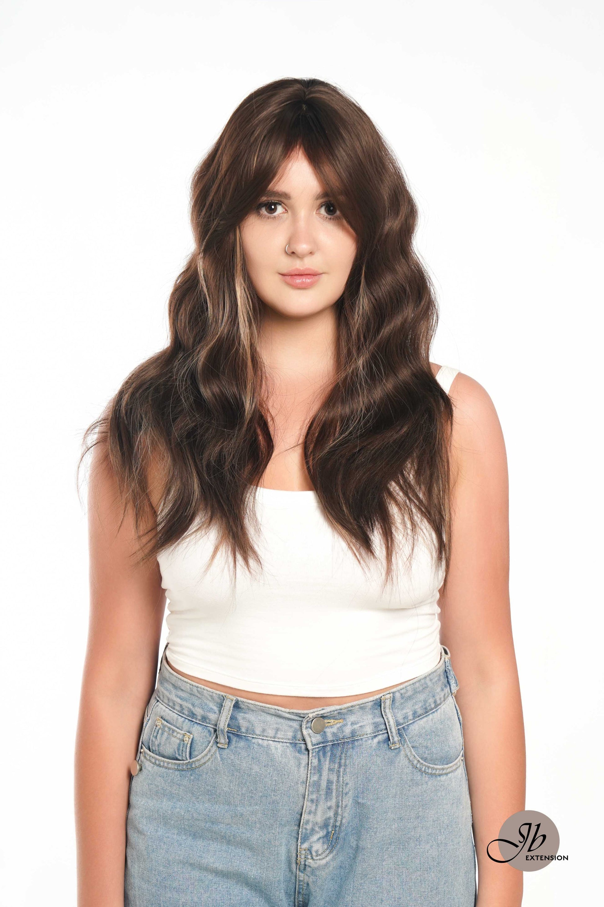 JBEXTENSION 24 Inches?Brown?With Highlight Body?Wave?With?Bangs?Wig?KIMMY?BROWN