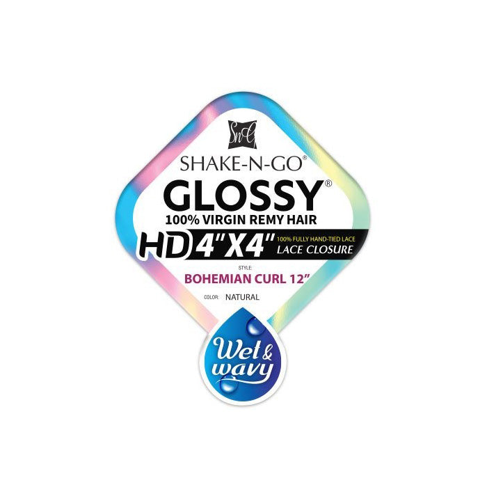 Shake N Go Glossy 100% Virgin Remy Hair HD 4x4 Hand-Tied Lace Closure - BOHEMIAN CURL 12 - Wet & Wavy