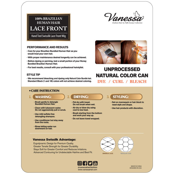 Vanessa 100% Brazilian Human Hair Swissilk Lace Front Wig - TCH ILONA