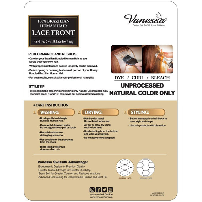 Vanessa Brazilian Human Hair Swiss Lace Front Wig - TMH AISHA
