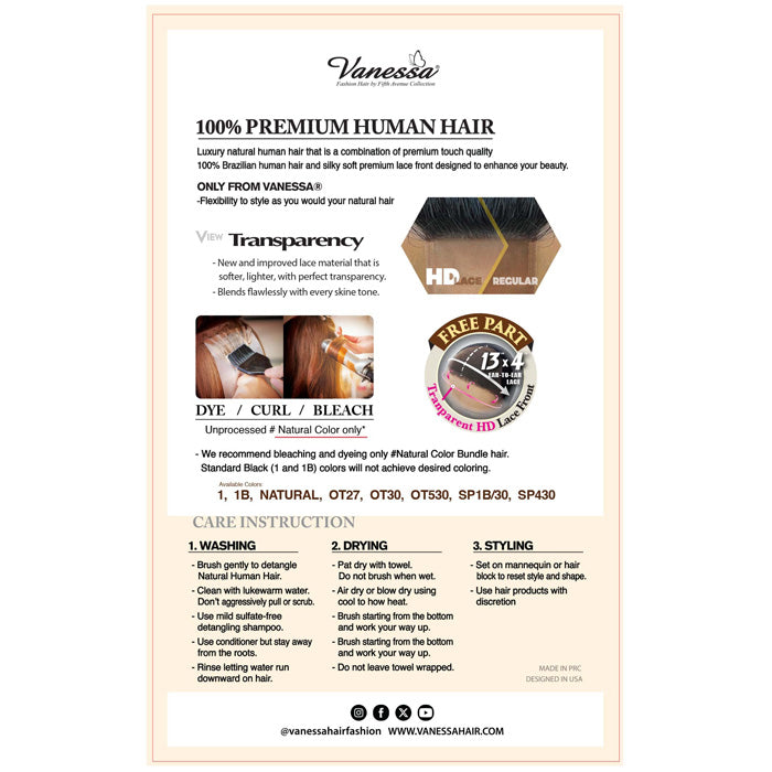 Vanessa Premium Brazilian 100% Human Hair Glueless HD 13x4 Lace Front Wig - H134 CENTIS