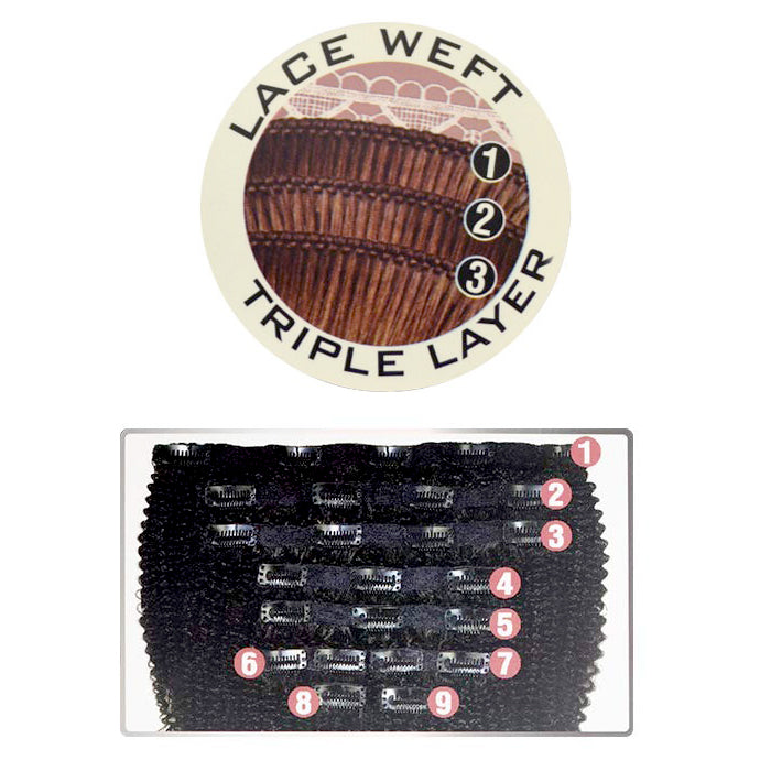 - Natural boosting clip-on 9pcs: 1PCS-11Inch weft / 2PCS-9Inch Weft / 2PCS-6Inch Weft / 2PCS-3Inch Weft / 2PCS-1Inch Weft